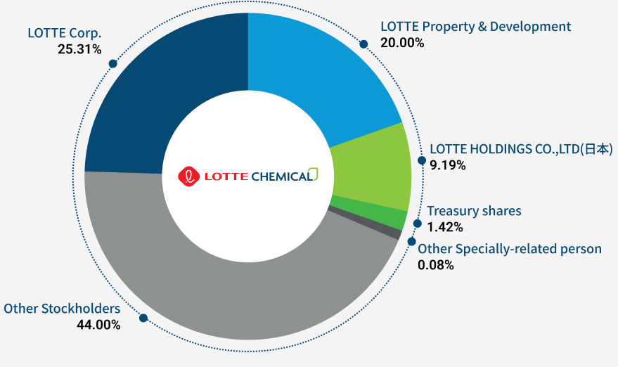 | LOTTE Corporation | Largest stockholder | 10,826,458 | 25.31 | |