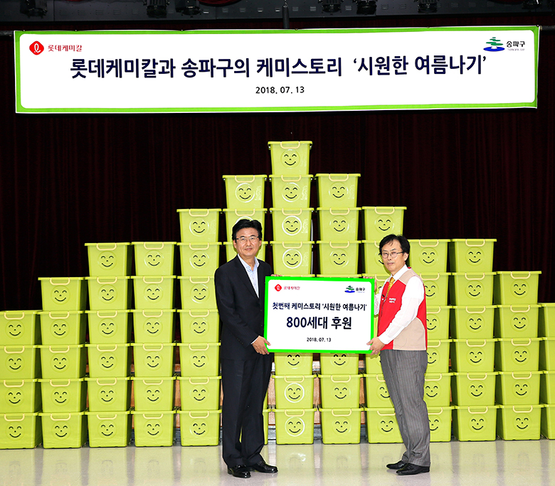 롯데케미칼(대표이사 김교현)은 한 여름 폭염에 시달리는 이웃들을 위해 ‘시원한 여름나기 쿨박스’ 800여 개를 송파구청에 기부했다.