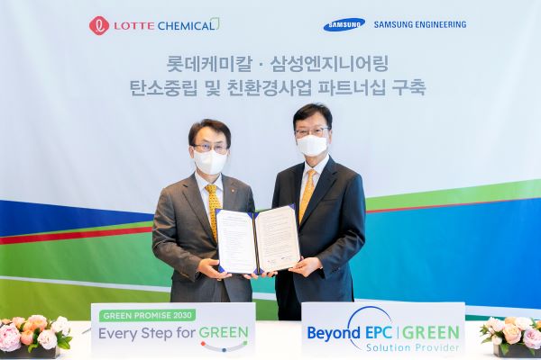 롯데케미칼과 삼성엔지니어링이 손잡고 그린사업을 추진한다.