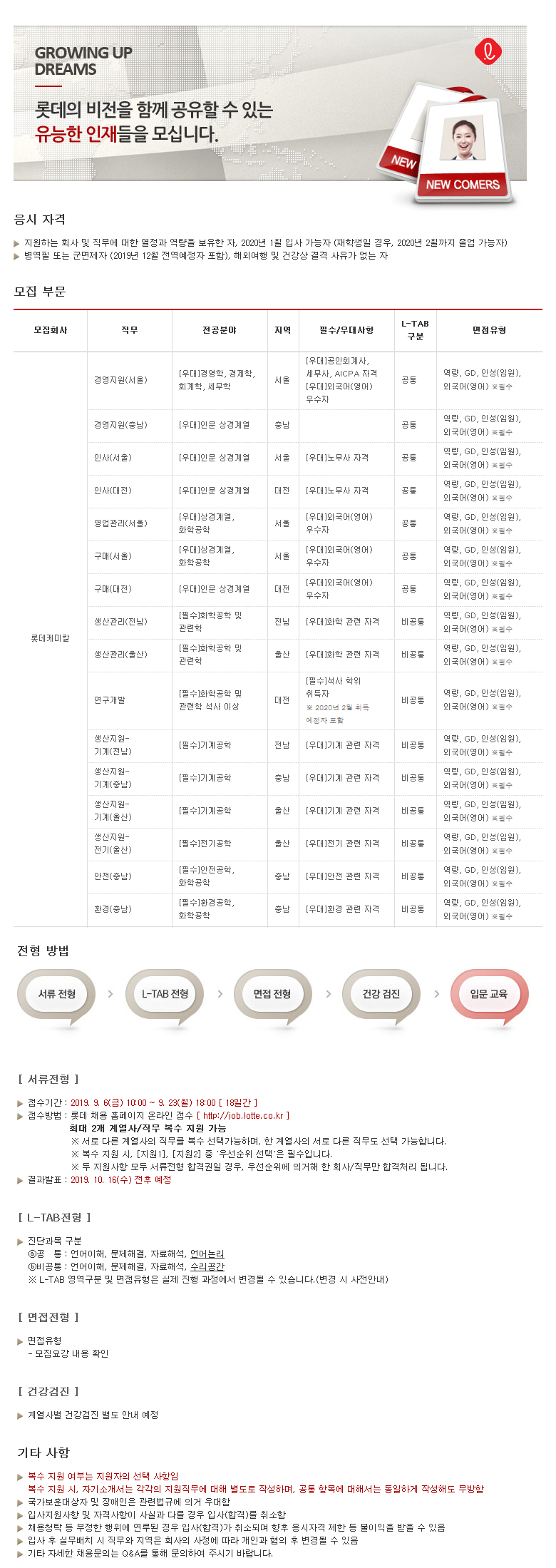 2019년 하반기 SPEC태클전형 신입채용(~11/6)