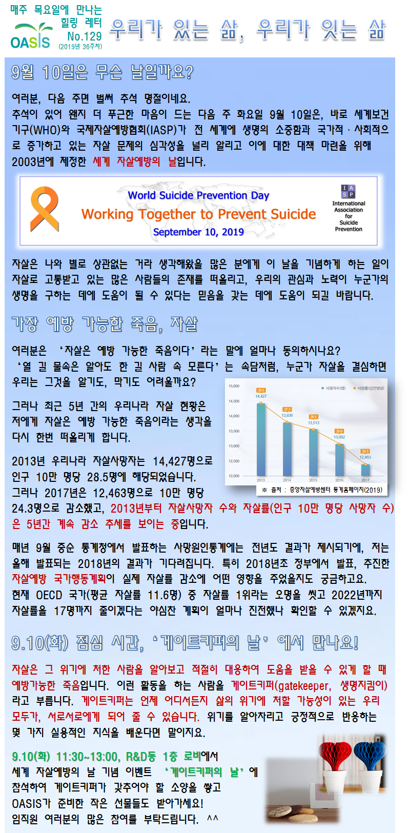 세계 자살예방의 날(9.10) 기념 "게이트키퍼의 날" 캠페인 안내
