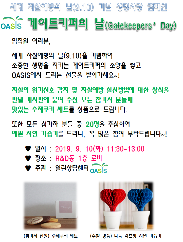 세계 자살예방의 날(9.10) 기념 "게이트키퍼의 날" 캠페인 안내